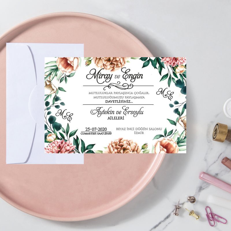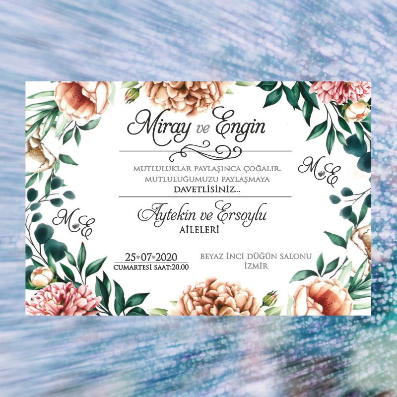 • Davetiyelerin sitede yer alan görselleri sizin kullanmakta olduğunuz bilgisayar ekran çözünürlüğüne göre farklılık gösterebilmektedir. Buna bağlı olarak nihai ürün ile ekranda gördüğünüz ürün arasında ton farklılıkları yaşanabilmektedir.