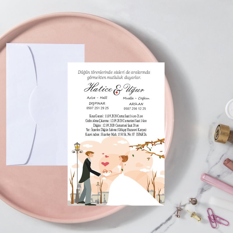 • Davetiye ebatı 10,5 cm x 15,5 cm’dir. Davetiye zarfsızdır.