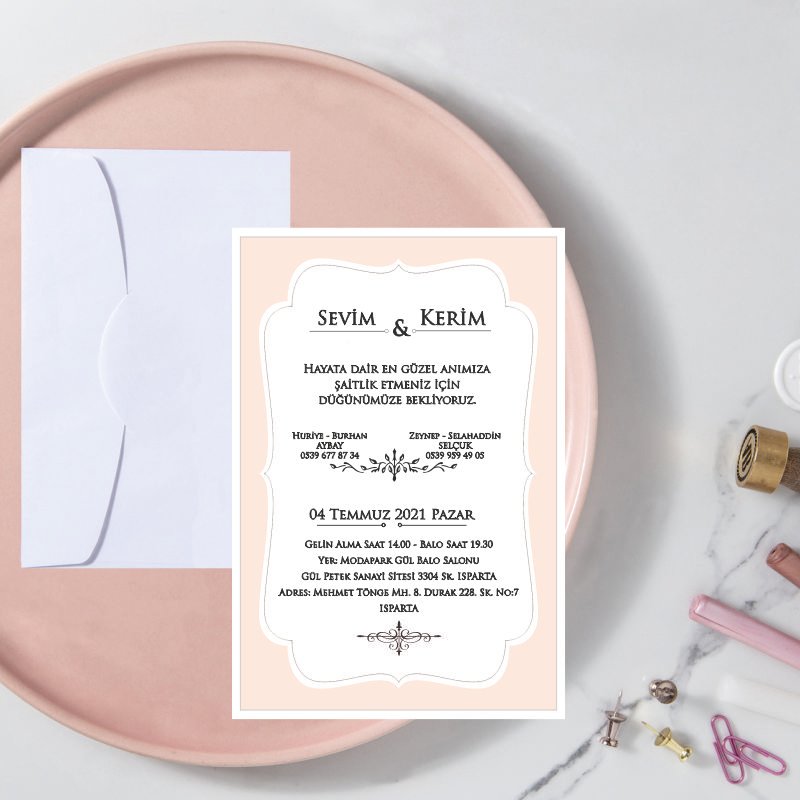 • Davetiye ebatı 10,5 cm x 15,5 cm’dir. Davetiye zarfsızdır.