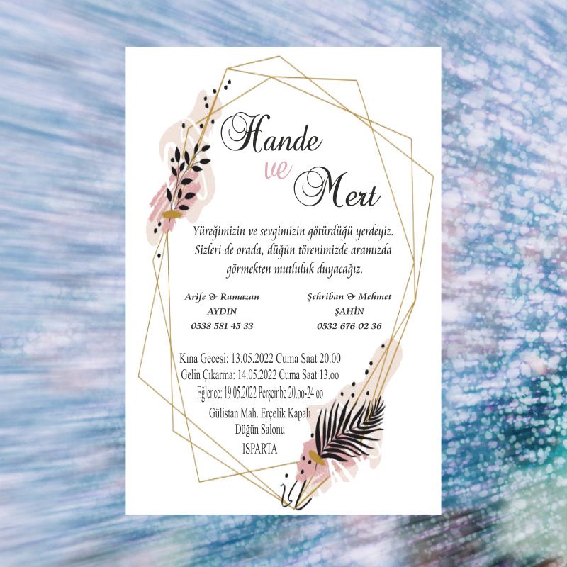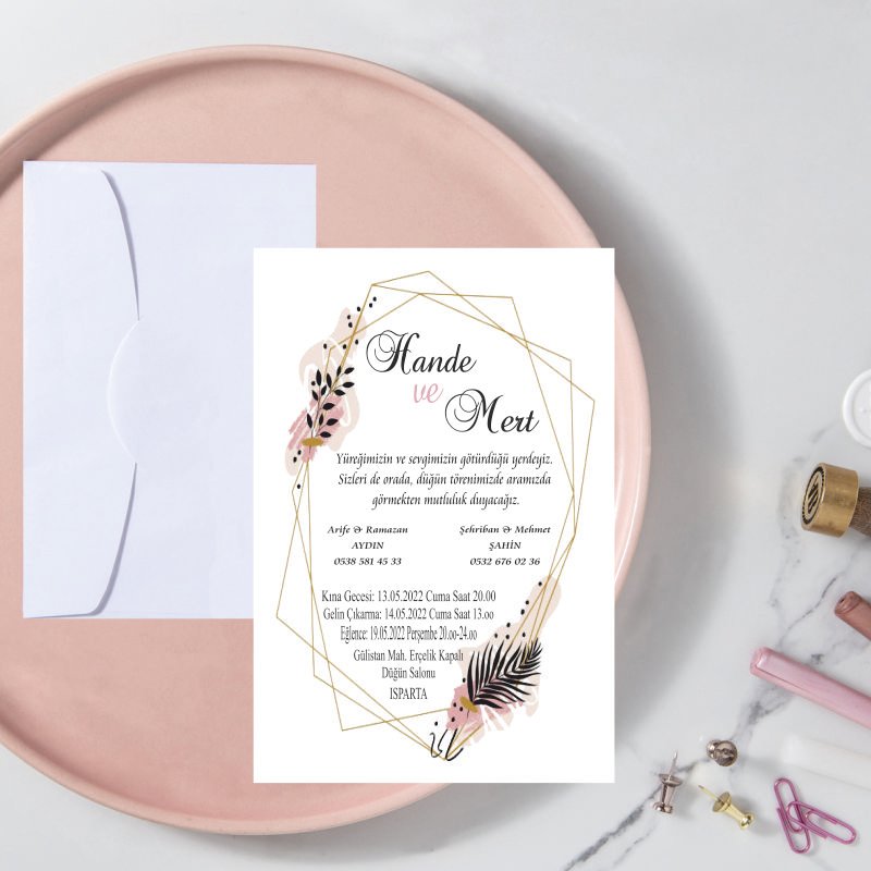 • Davetiye ebatı 10,5 cm x 15,5 cm’dir. Davetiye zarfsızdır.