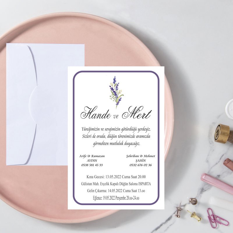 • Davetiye ebatı 10,5 cm x 15,5 cm’dir. Davetiye zarfsızdır.