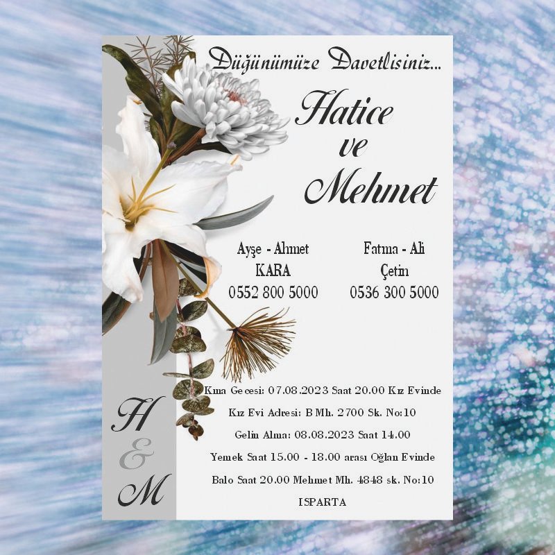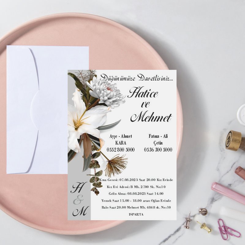 • Davetiyelerin sitede yer alan görselleri sizin kullanmakta olduğunuz bilgisayar ekran çözünürlüğüne göre farklılık gösterebilmektedir. Buna bağlı olarak nihai ürün ile ekranda gördüğünüz ürün arasında ton farklılıkları yaşanabilmektedir.