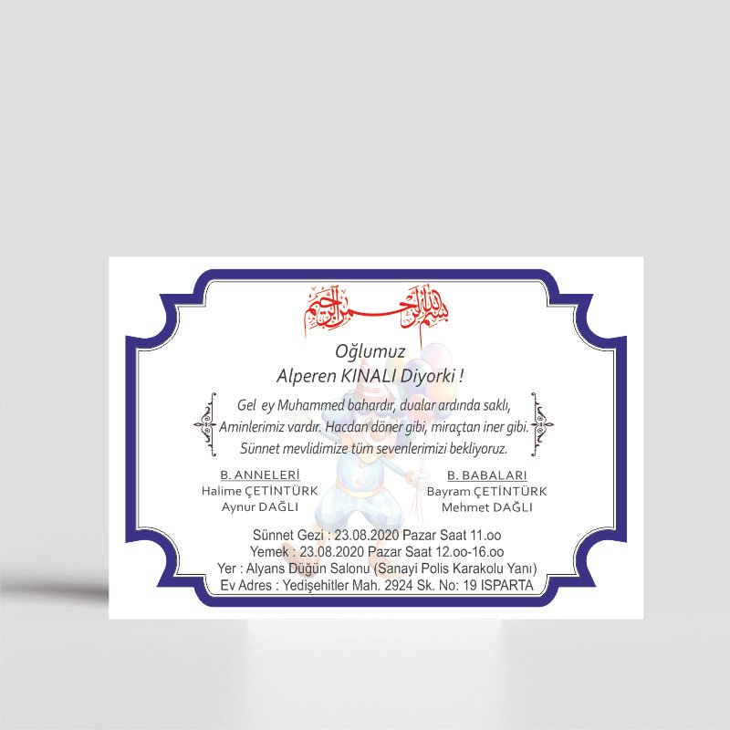 • Davetiye ebatı 10,5 cm x 15,5 cm’dir. Davetiye zarfsızdır.