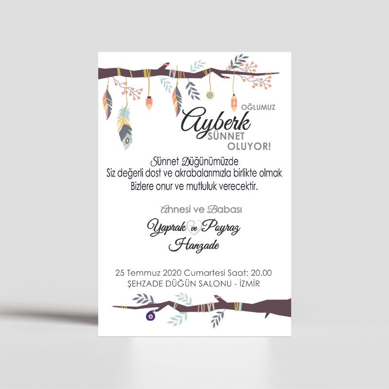 • Davetiye ebatı 10,5 cm x 15,5 cm’dir. Davetiye zarfsızdır.