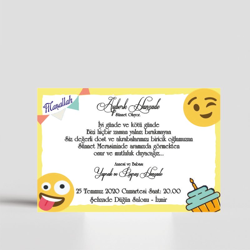 • Davetiye ebatı 10,5 cm x 15,5 cm’dir. Davetiye zarfsızdır.